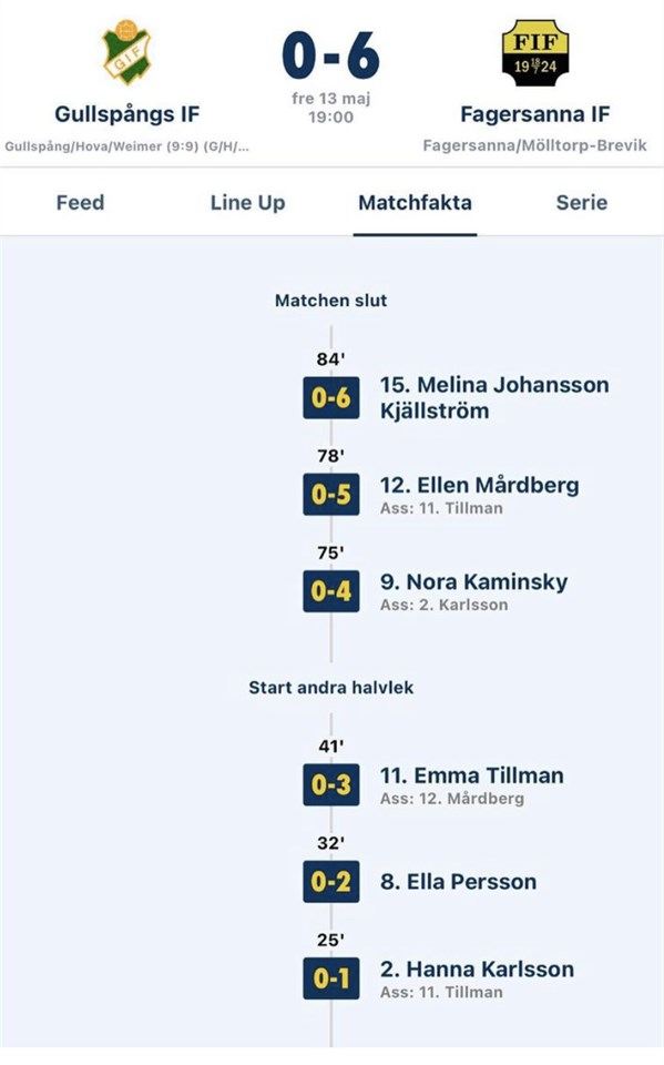 Kvällens match mot Gullspång/Hova/Weimer bjöd på bortaseger med 0-6. Nästa match spelas onsdag 18 maj mot Korsberga på vår andra hemmaarena, Möllstorps IP. Välkomna att stötta laget på plats!!! 🔵:yellow_circle: Dam Fagersanna/Mölltorp/Brevik 14 maj 2022 0kommentarer